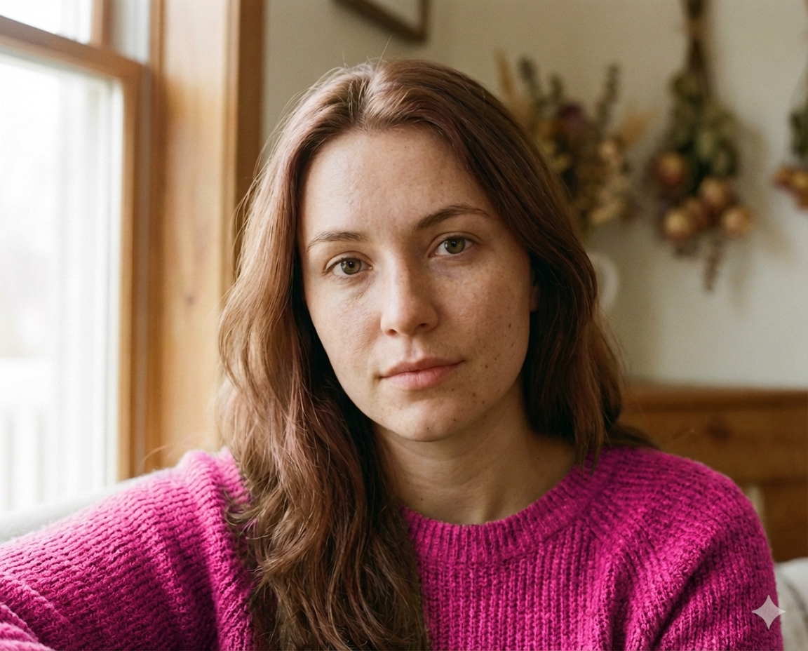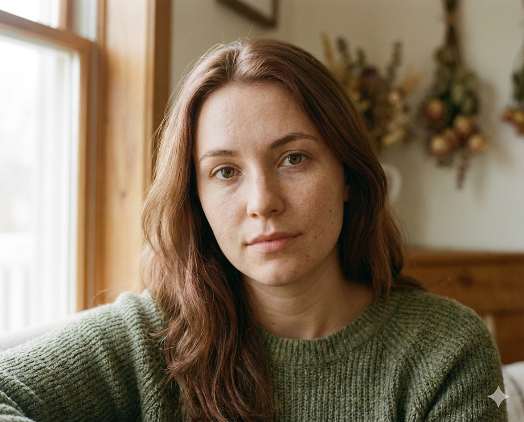 You possess the exquisite, earthy elegance of a Soft Autumn. Your coloration is a masterclass in low-contrast harmony, reminiscent of a forest floor in late October or an impressionist painting. Unlike seasons that demand high drama or stark contrasts, your beauty relies on a muted, golden richness. The 'Soft' designation means your primary characteristic is a lack of harshness—your hair, skin, and eyes blend seamlessly into one another. The 'Autumn' influence brings a warm, golden undertone that glows rather than shines. Your current moss-green sweater is intuitively perfect; it mirrors the organic, muted warmth of your natural palette. You are not built for neons or stark blacks; you are the muse of spices, woods, and twilight mists.